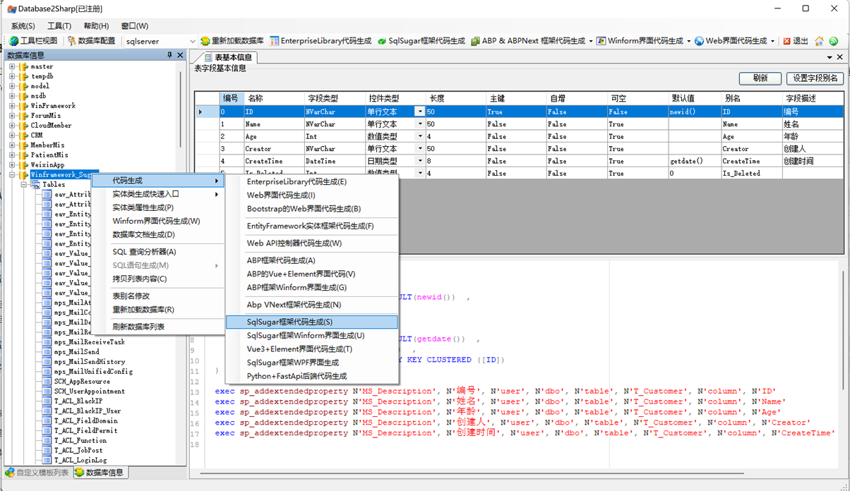 代碼生成工具完美支持Winform開發(fā)框架、混合式Winfrom開發(fā)框架、Bootstrap開發(fā)框架、ABP/ABP -VNext開發(fā)框架、SqlSugar開發(fā)框架、基于MVC+EasyUI的Web開發(fā)框架的整合開發(fā)工作;可以生成各種架構代碼、生成Web界面代碼、Vue&Element界面代碼、Winform界面代碼,導出數據庫文檔等功能。