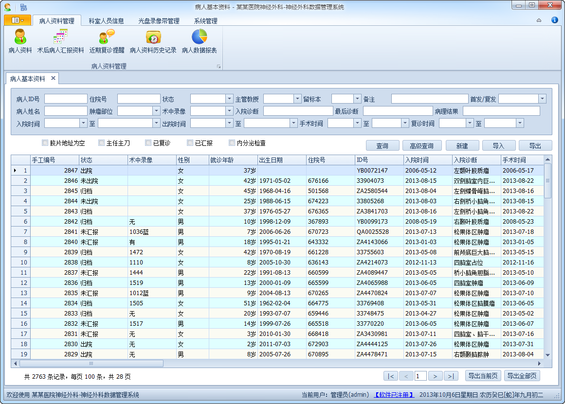 我們開發(fā)了一系列的病人資料管理系統,包括《神經外科病人資料管理系統》、《脊柱外科病人資料管理系統》、《腫瘤外科病人資料管理系統》等軟件,豐富的開發(fā)經驗和行業經驗能為您開啟病人資料數字化管理的金鑰匙,提高日常的管理效率。